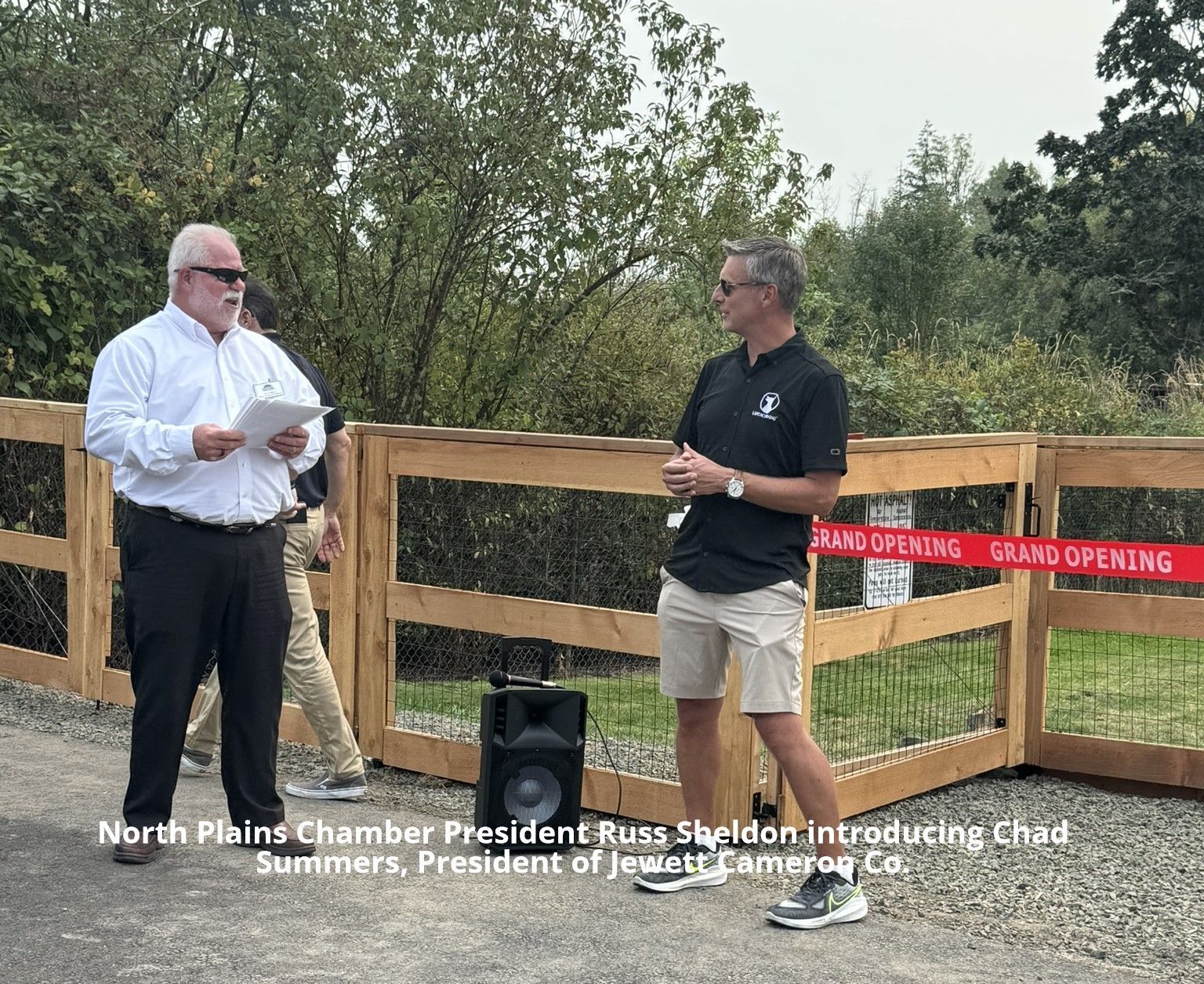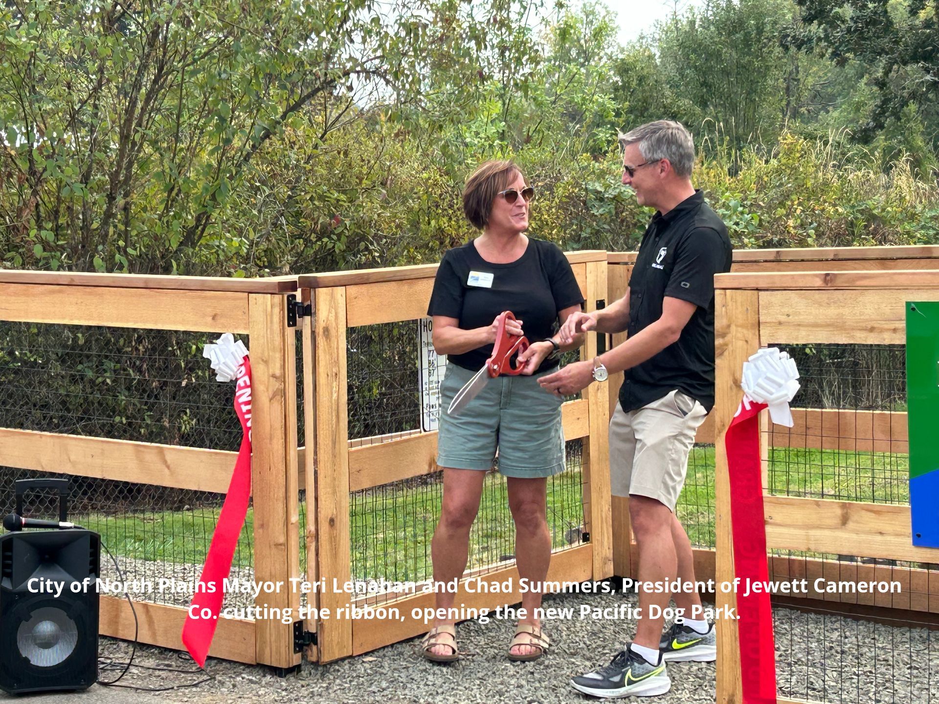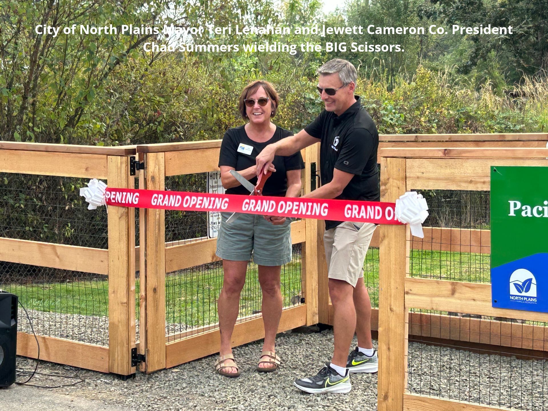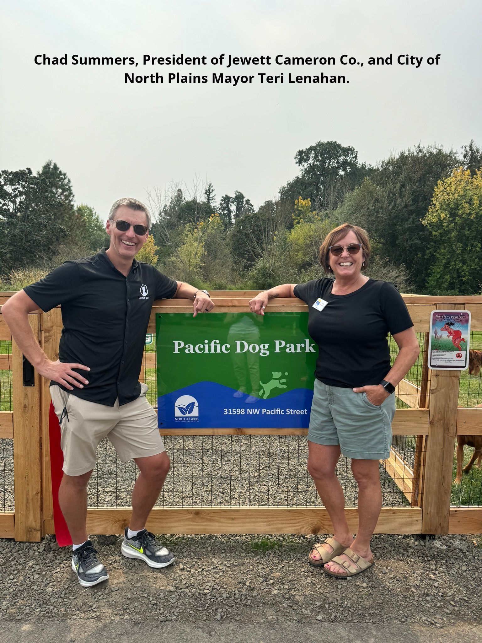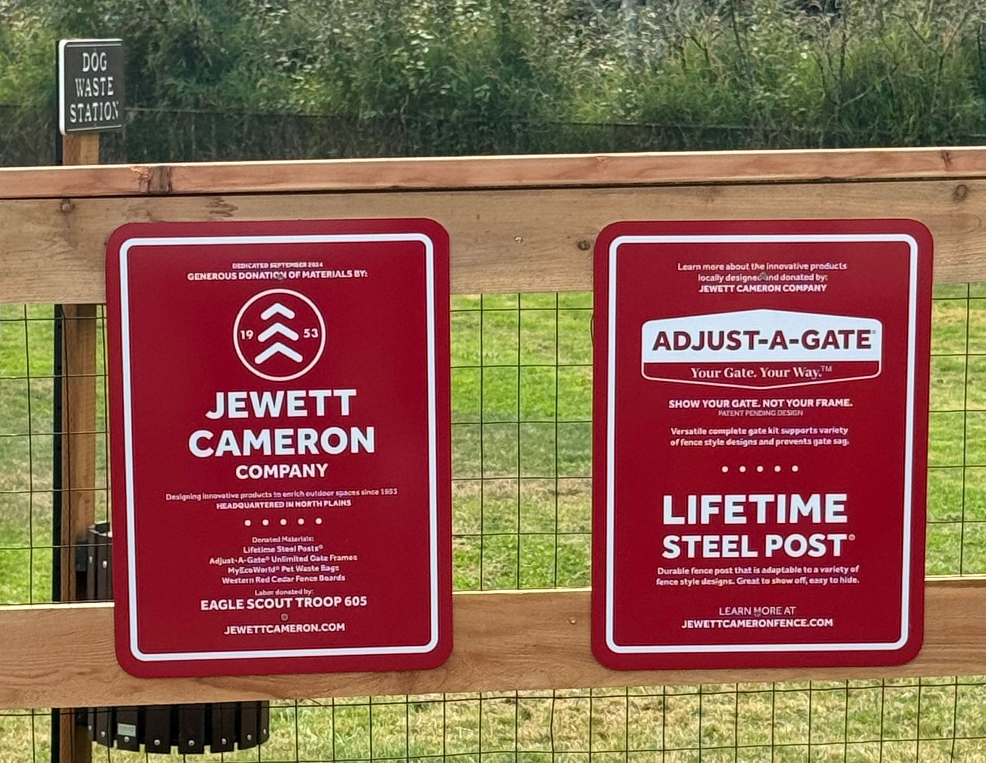 Jewett Cameron Co., a North Plains Chamber Member for many years, partnered with the City of North Plains to provide the fencing materials. The Lifetime Steel Posts®, Adjust-A-Gate® Unlimited Gate Frames, MyEcoWorld® Pet Waste Bags and Western Red Cedar Fence Boards were all generously donated by Jewett Cameron Co. The Company will continue to donate their MyEcoWorld® Pet Waste Bags in the Park's dispensers. Visit the Jewett Cameron Co. website for more information about their products and where to purchase.