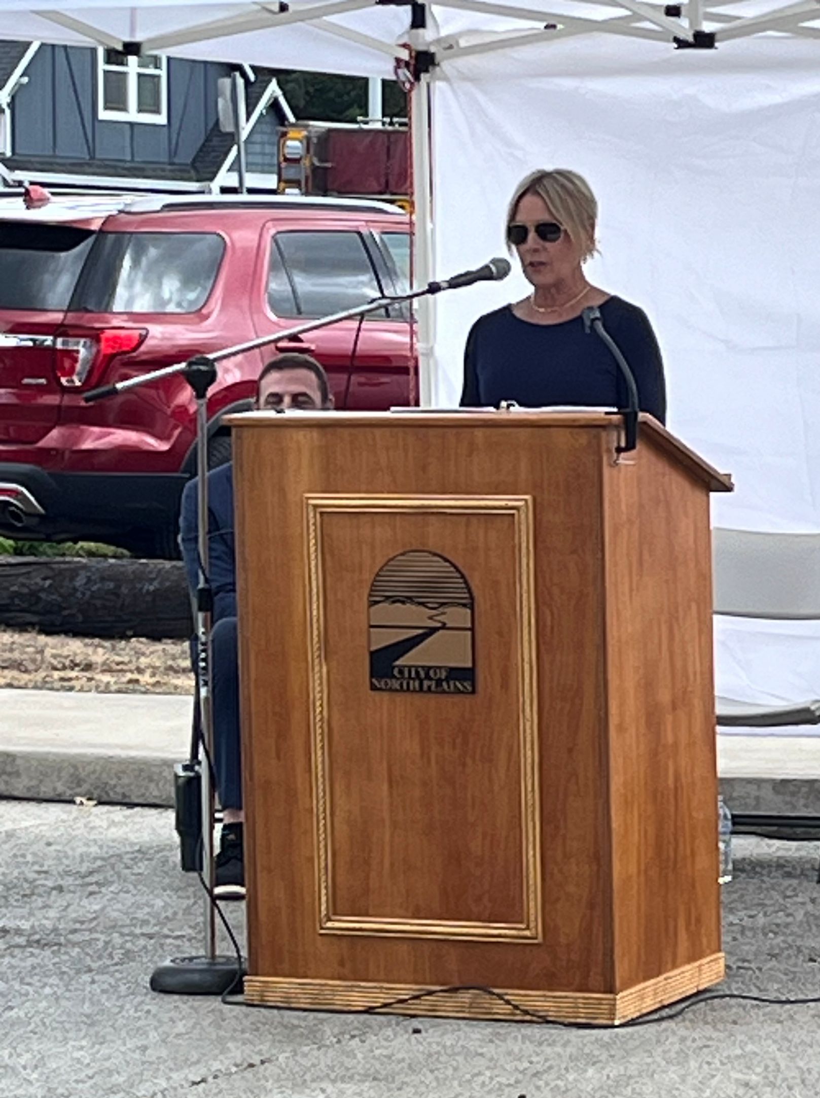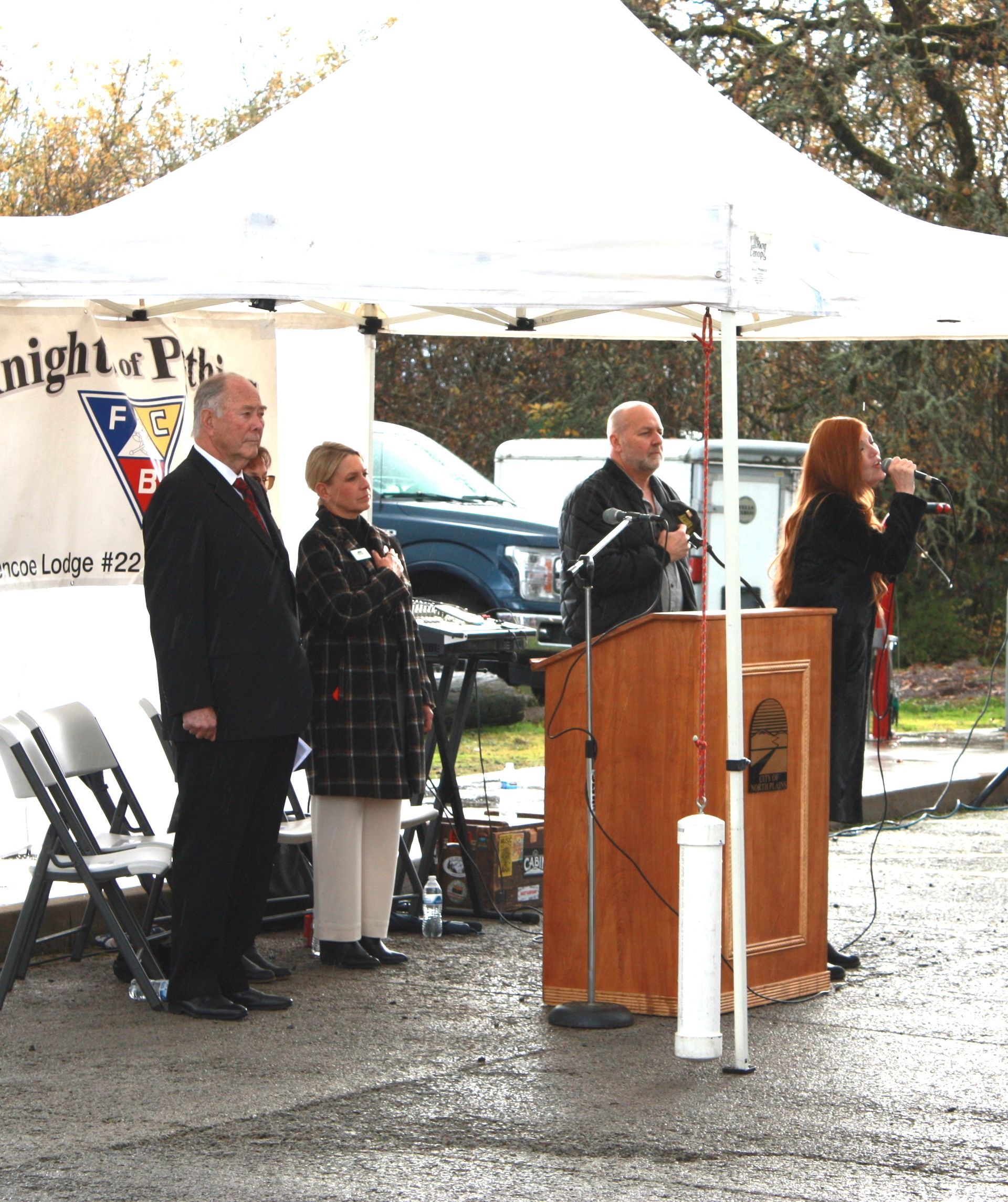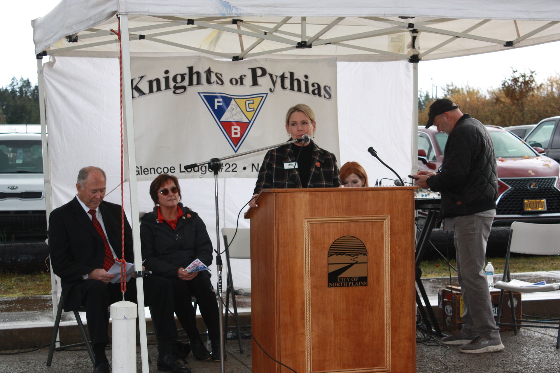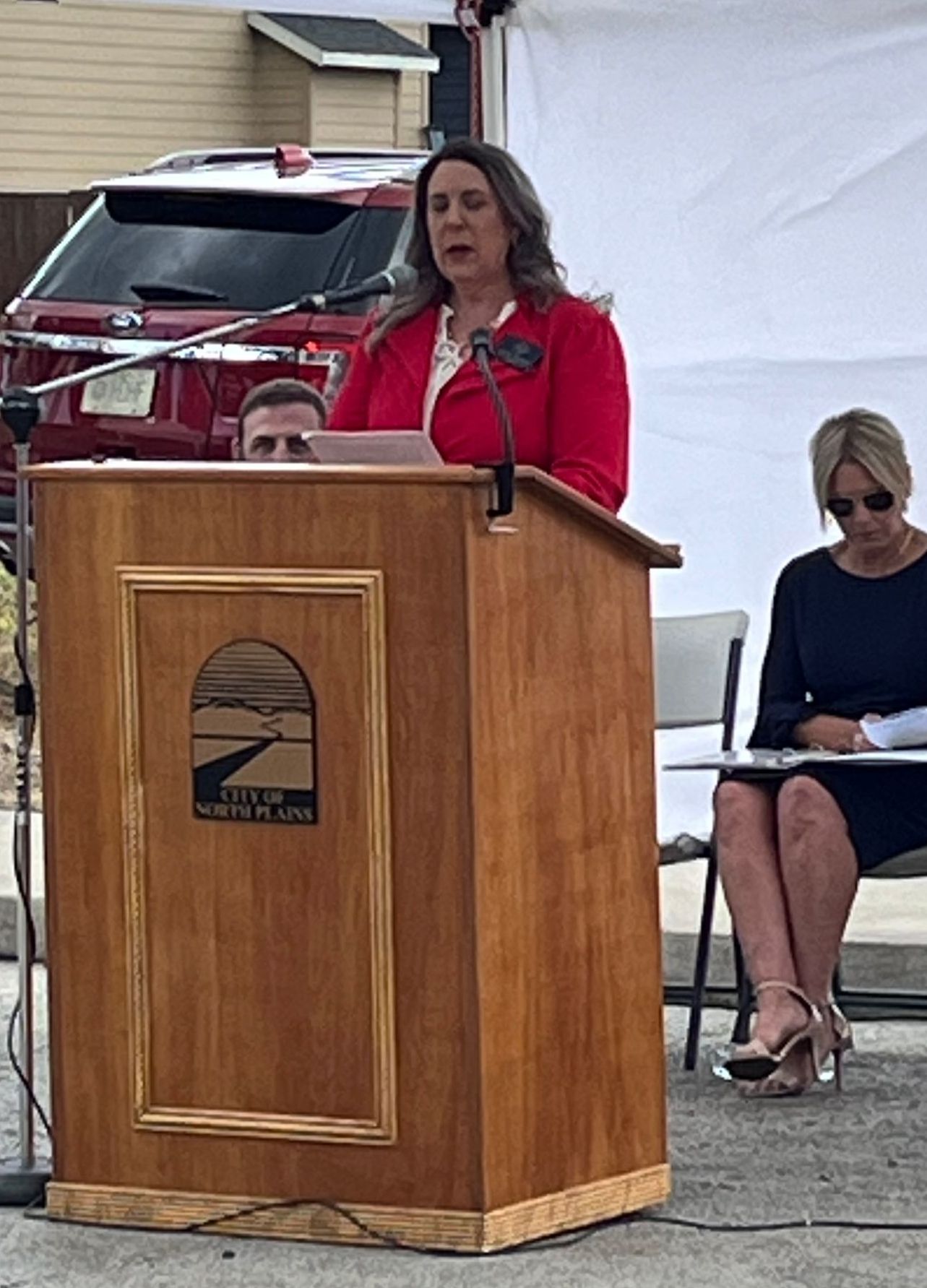 Serving as Master of Ceremonies was Kimberly Maus, Vice President of the North Plains Chamber and co-anchor of Fox 12’s Good Day Oregon. The ceremony opened with the posting of the Colors by the Martin J. Ryan VFW Post 2666 Color Guard, followed by vocalist Catherine Loyer performance of the National Anthem. State Representative Darcey Edwards (District 31) addressed the crowd, highlighting state initiatives aimed at supporting veterans and their families.