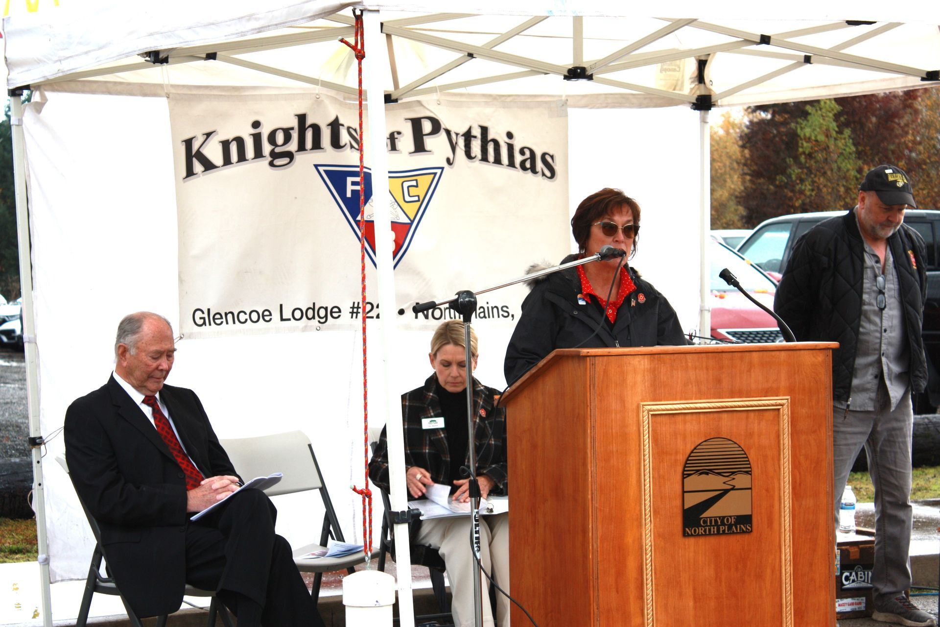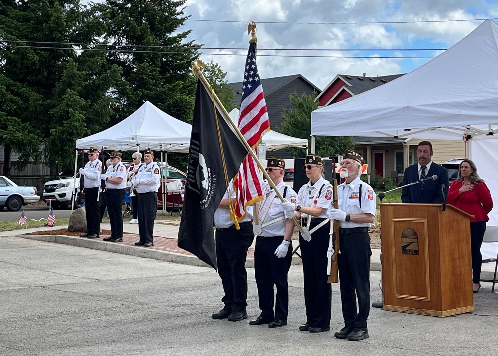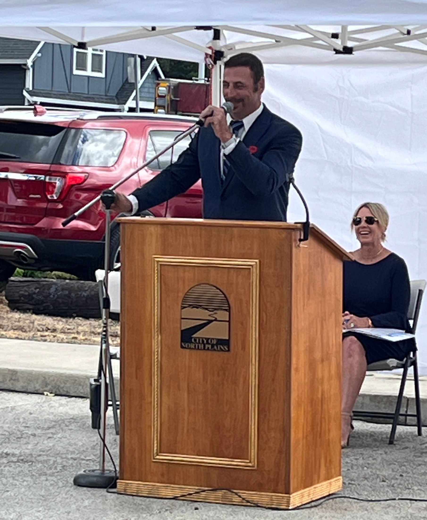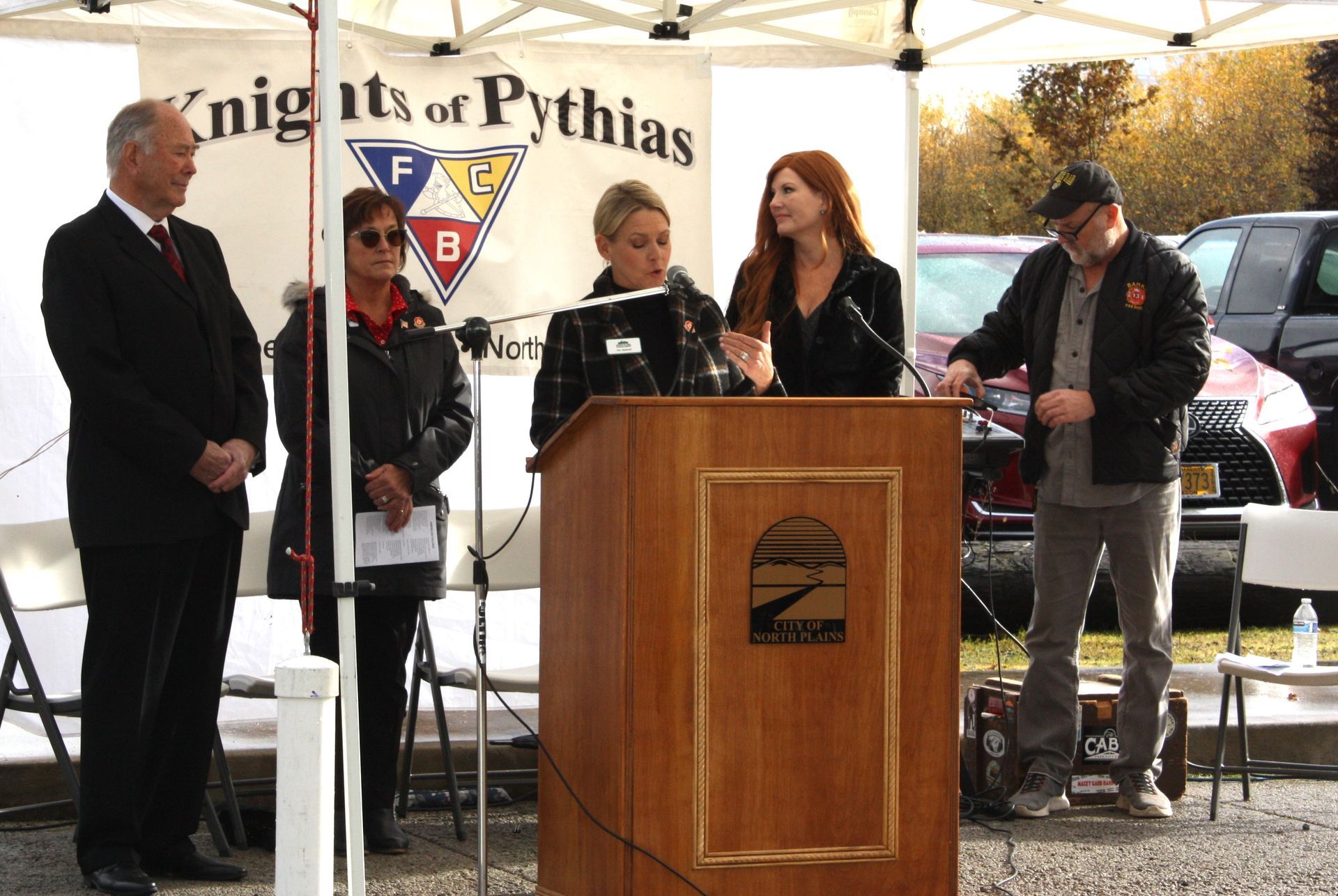 Serving as Master of Ceremonies was Kimberly Maus, Vice President of the North Plains Chamber and co-anchor of Fox 12’s Good Day Oregon. The ceremony opened with the posting of the Colors by the Martin J. Ryan VFW Post 2666 Color Guard, followed by vocalist Catherine Loyer performance of the National Anthem. State Representative Darcey Edwards (District 31) addressed the crowd, highlighting state initiatives aimed at supporting veterans and their families.
