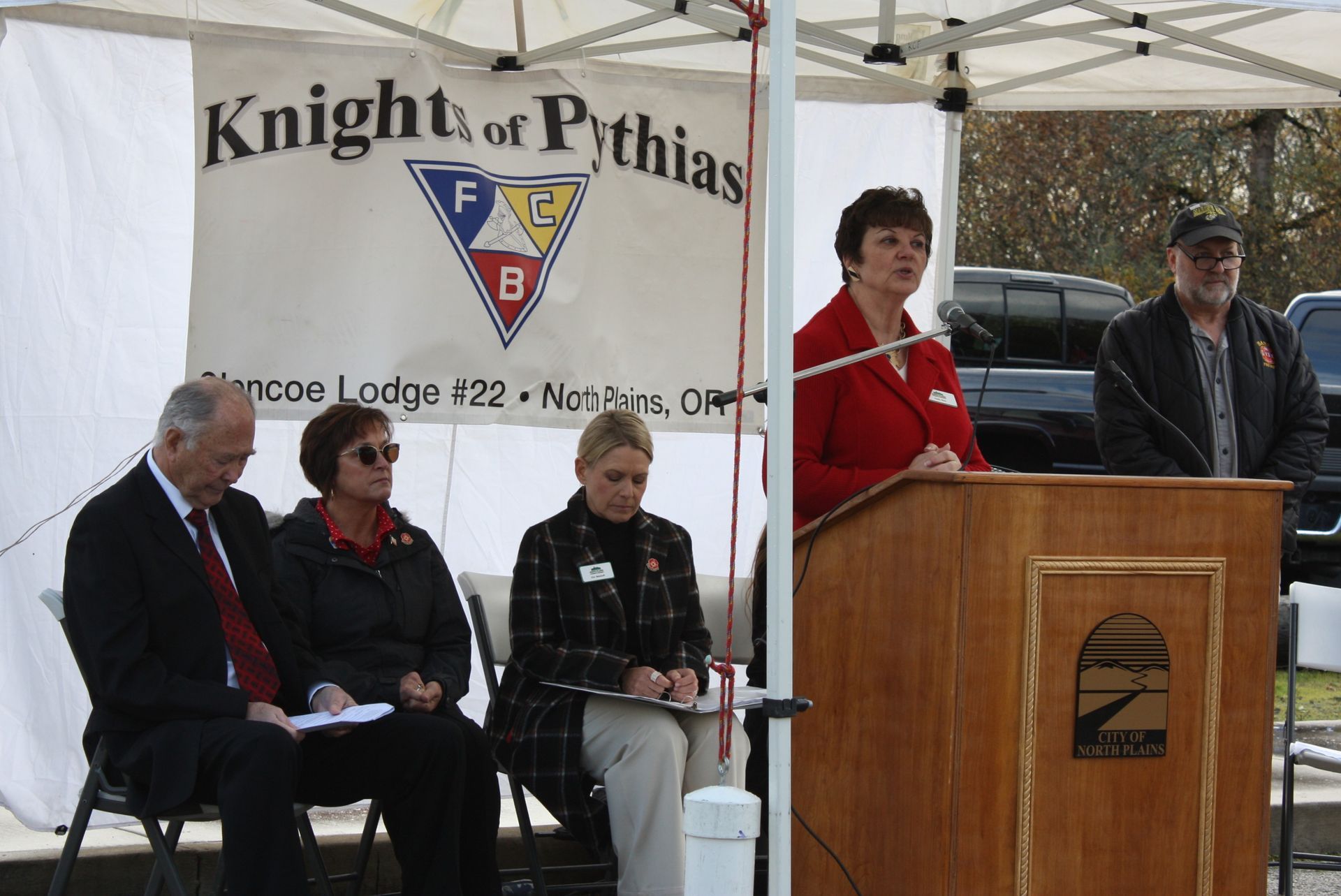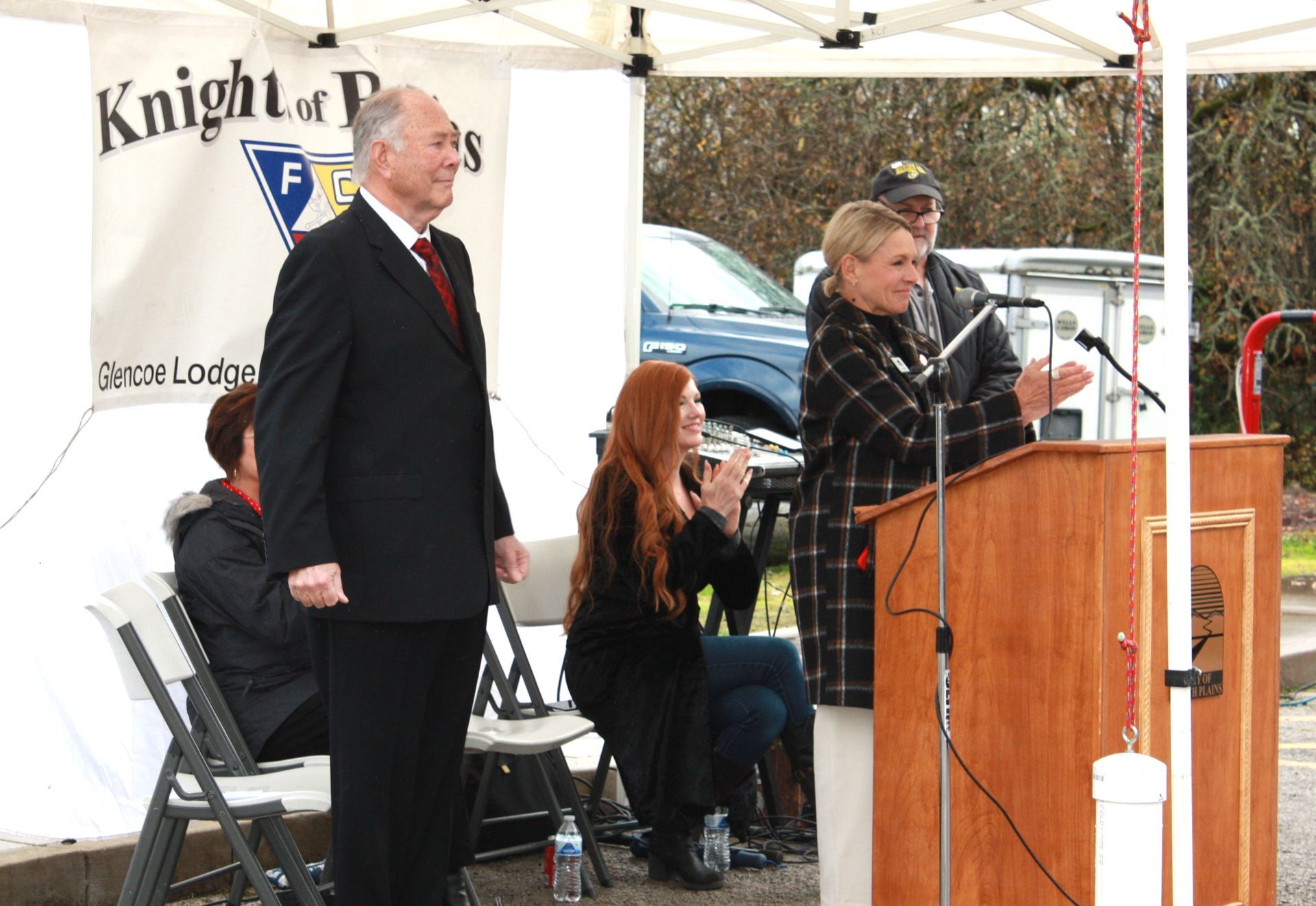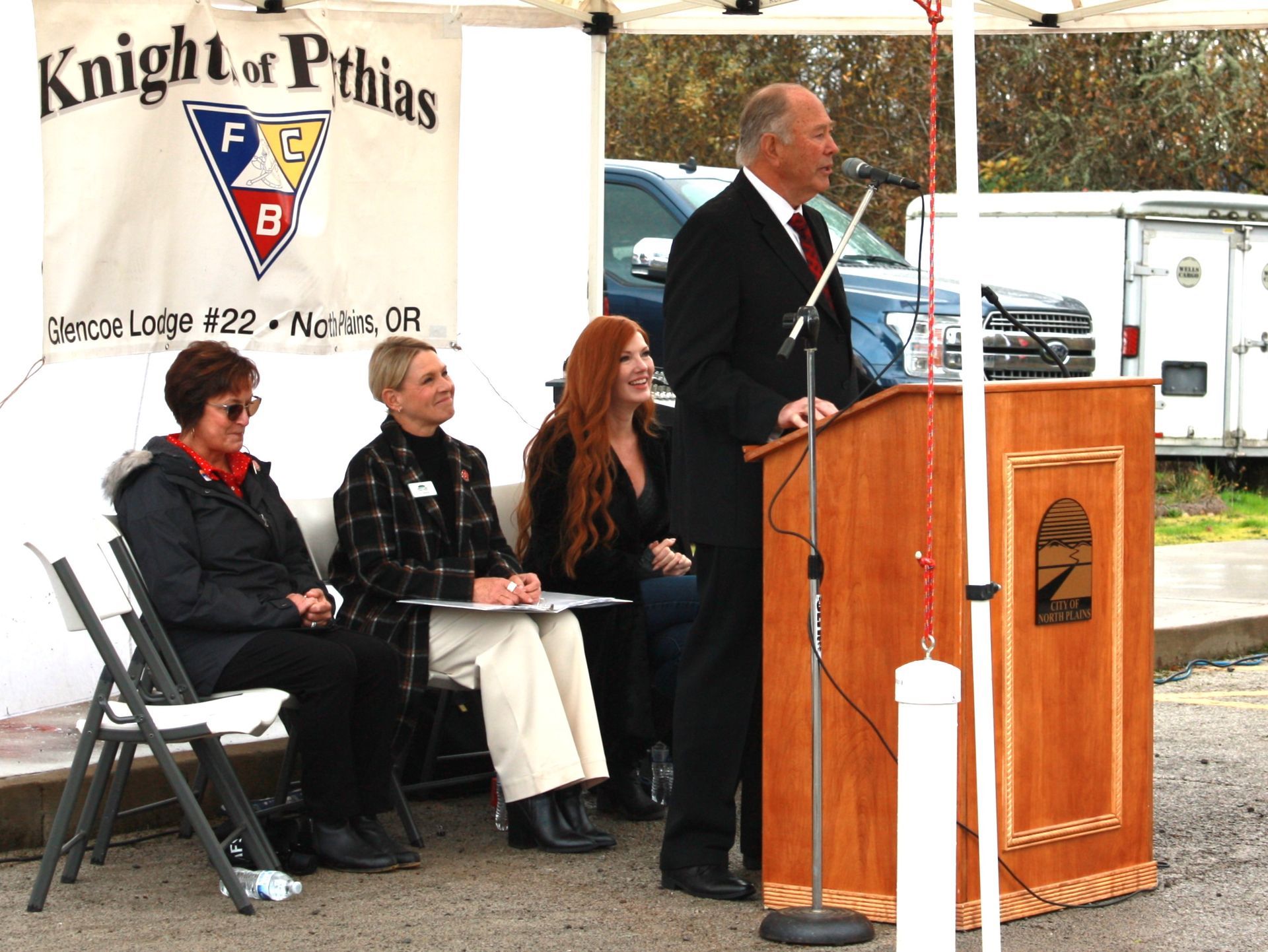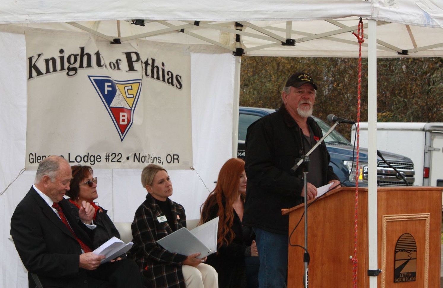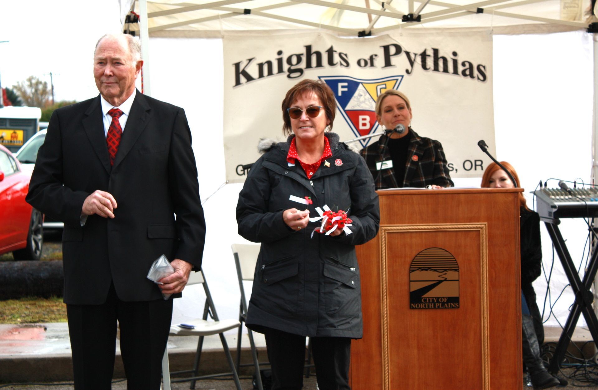 Serving as Master of Ceremonies was Kimberly Maus, Vice President of the North Plains Chamber and co-anchor of Fox 12’s Good Day Oregon. The ceremony opened with the posting of the Colors by the Martin J. Ryan VFW Post 2666 Color Guard, followed by vocalist Catherine Loyer performance of the National Anthem. State Representative Darcey Edwards (District 31) addressed the crowd, highlighting state initiatives aimed at supporting veterans and their families.