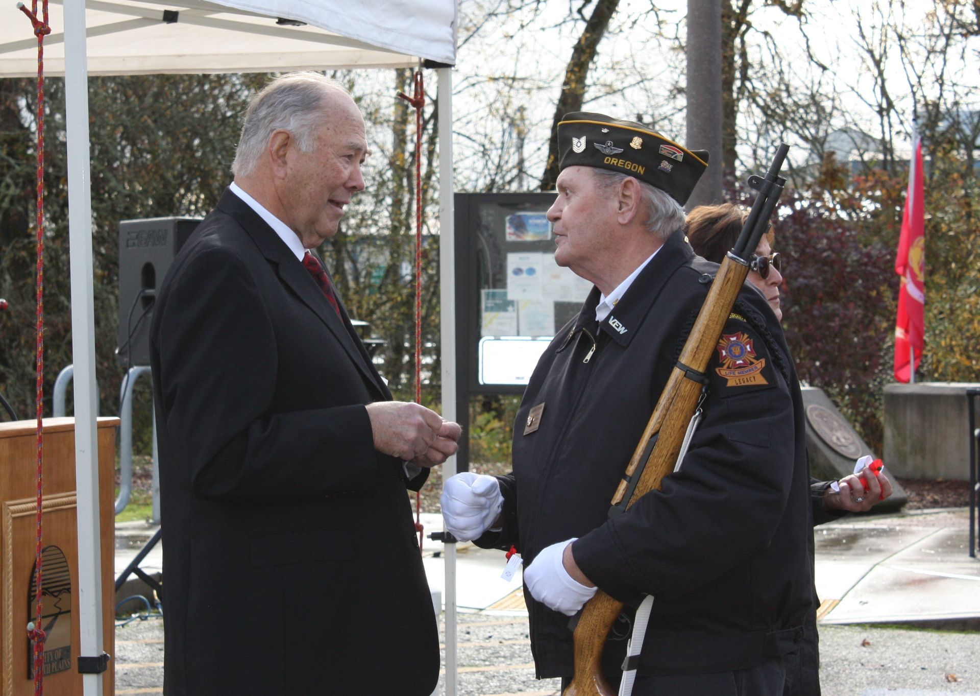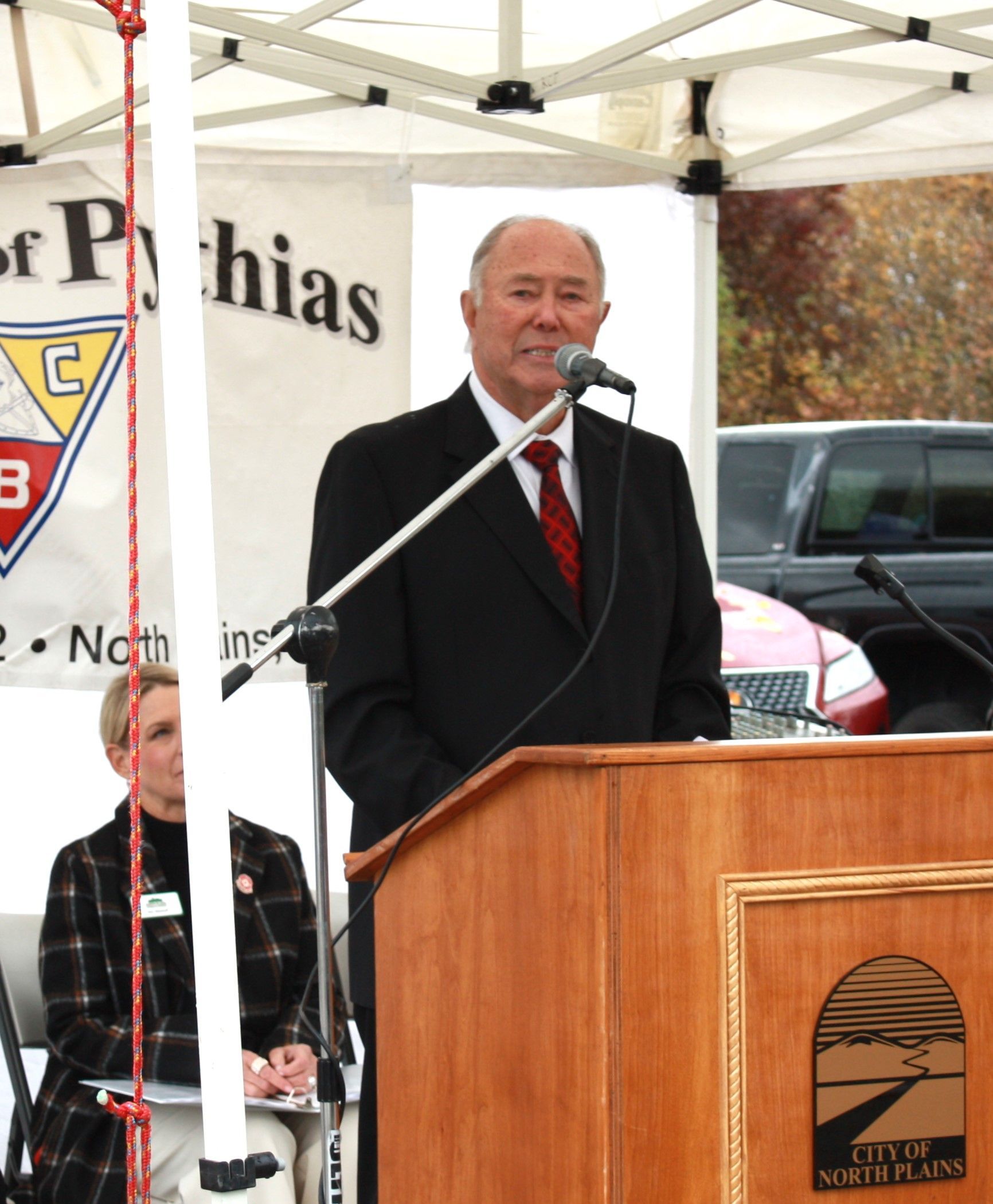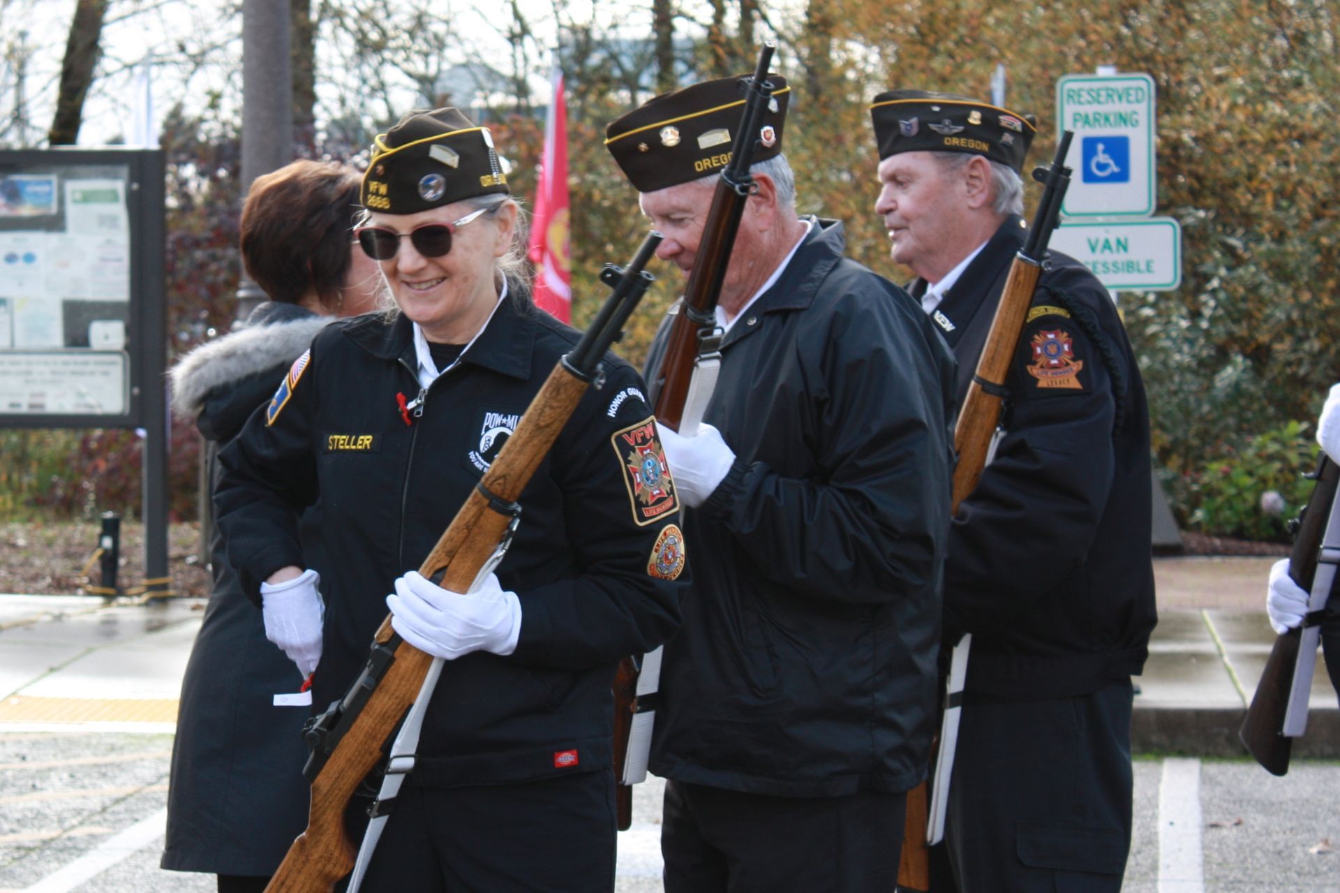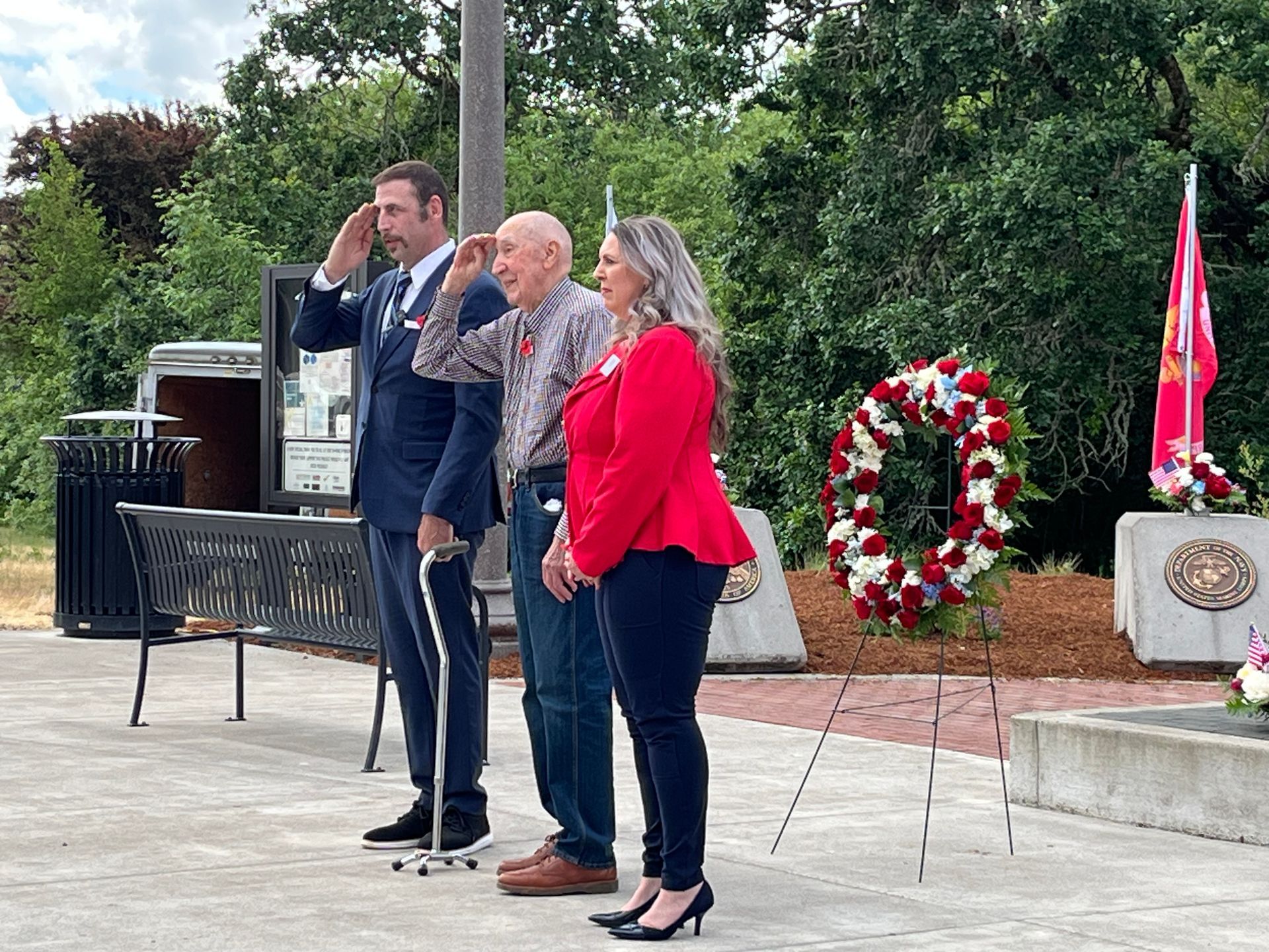 Serving as Master of Ceremonies was Kimberly Maus, Vice President of the North Plains Chamber and co-anchor of Fox 12’s Good Day Oregon. The ceremony opened with the posting of the Colors by the Martin J. Ryan VFW Post 2666 Color Guard, followed by vocalist Catherine Loyer performance of the National Anthem. State Representative Darcey Edwards (District 31) addressed the crowd, highlighting state initiatives aimed at supporting veterans and their families.