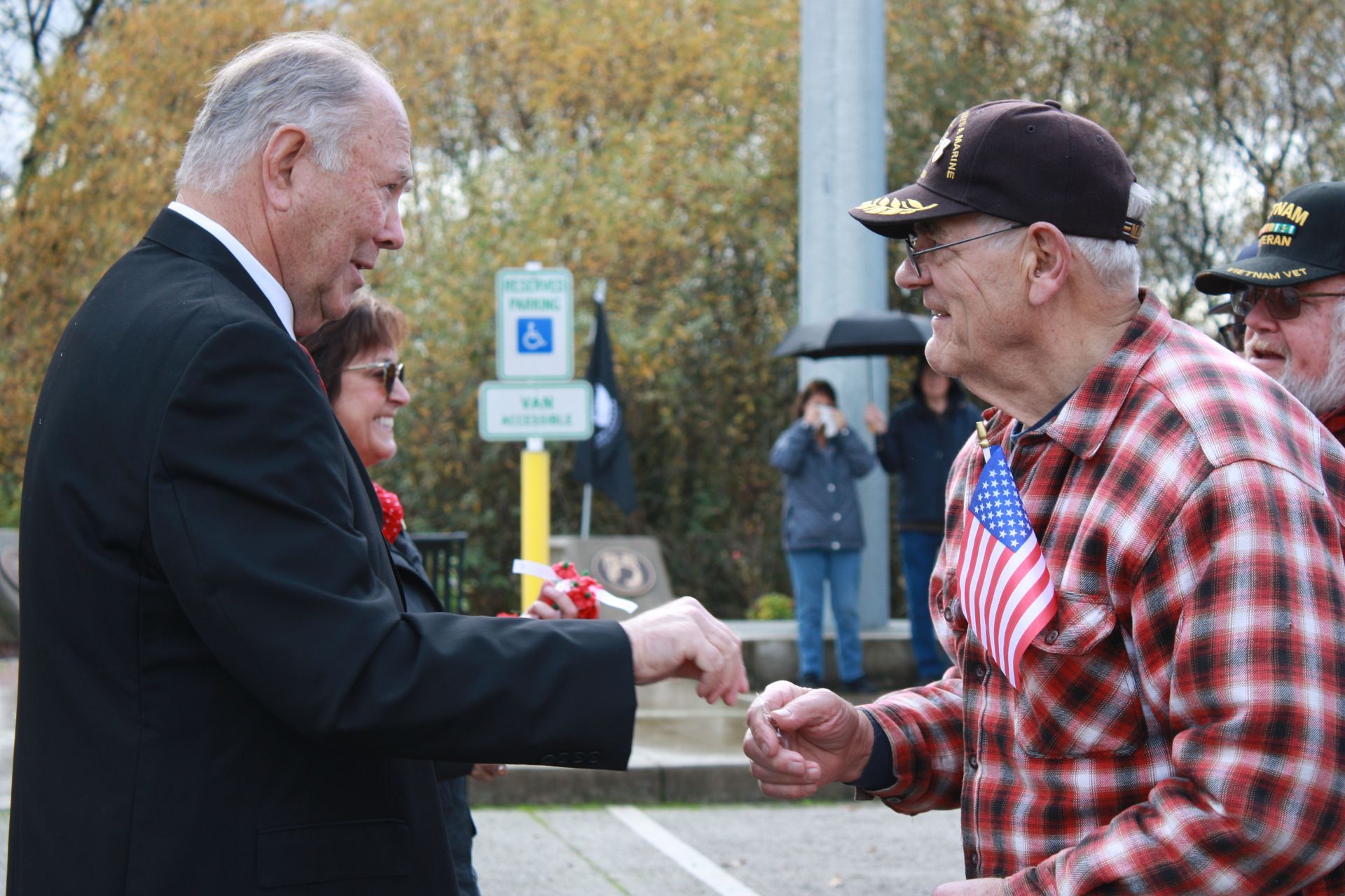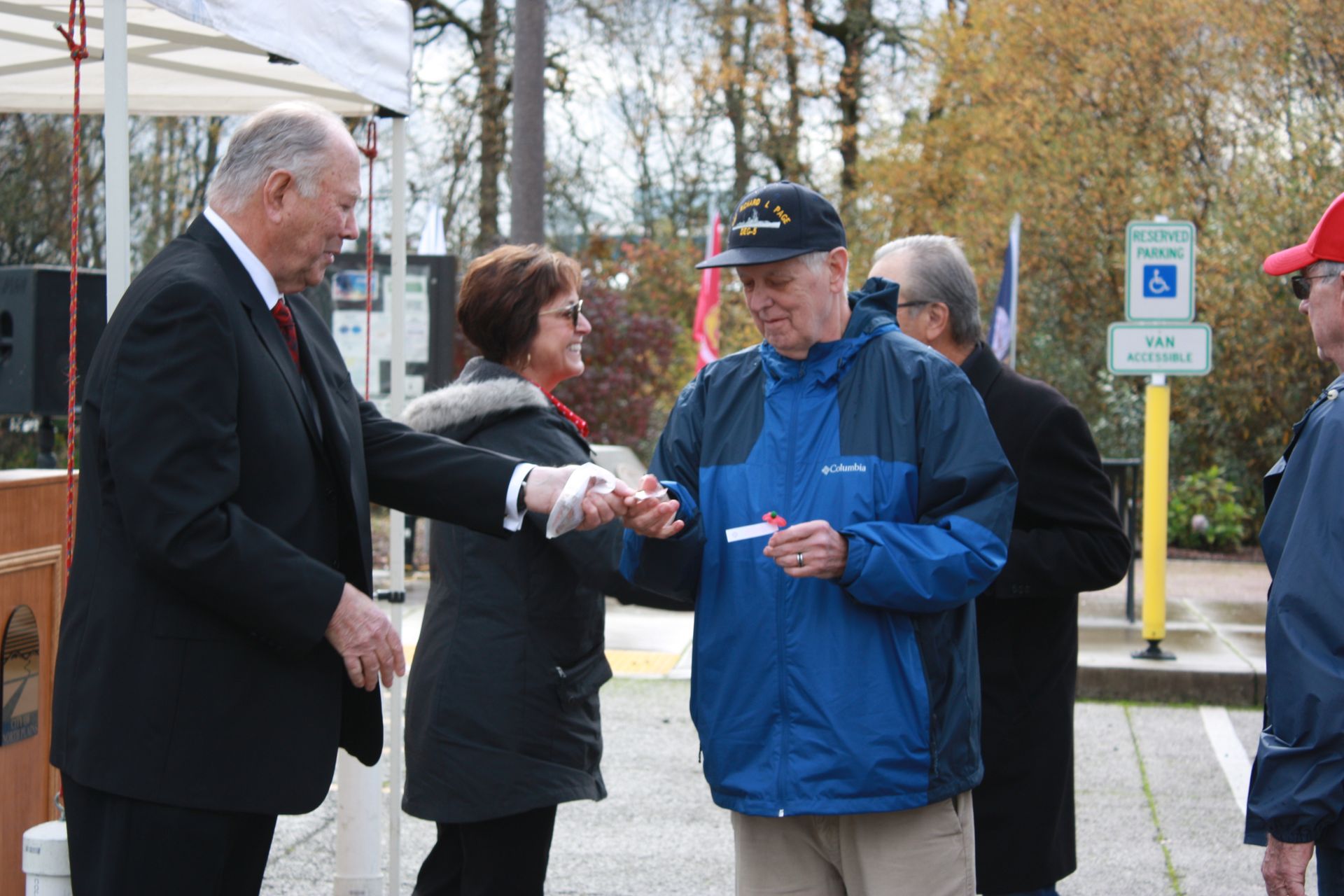 Mayor Lenahan and Colonel Powell greeted over 35 Veterans with a VFW Buddy Poppy and a Buddy Poppy pin.