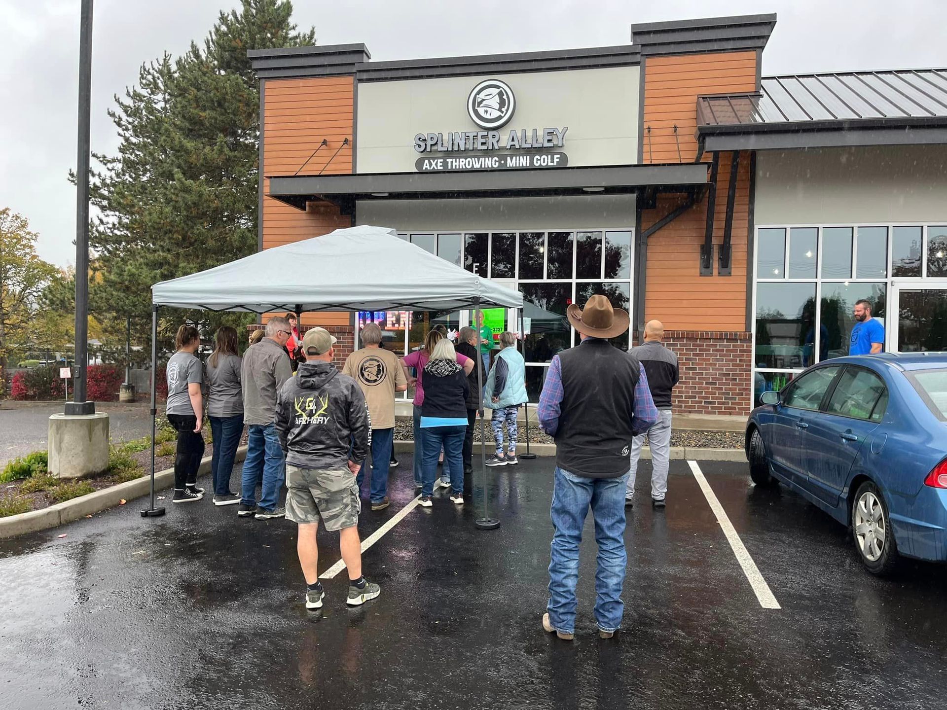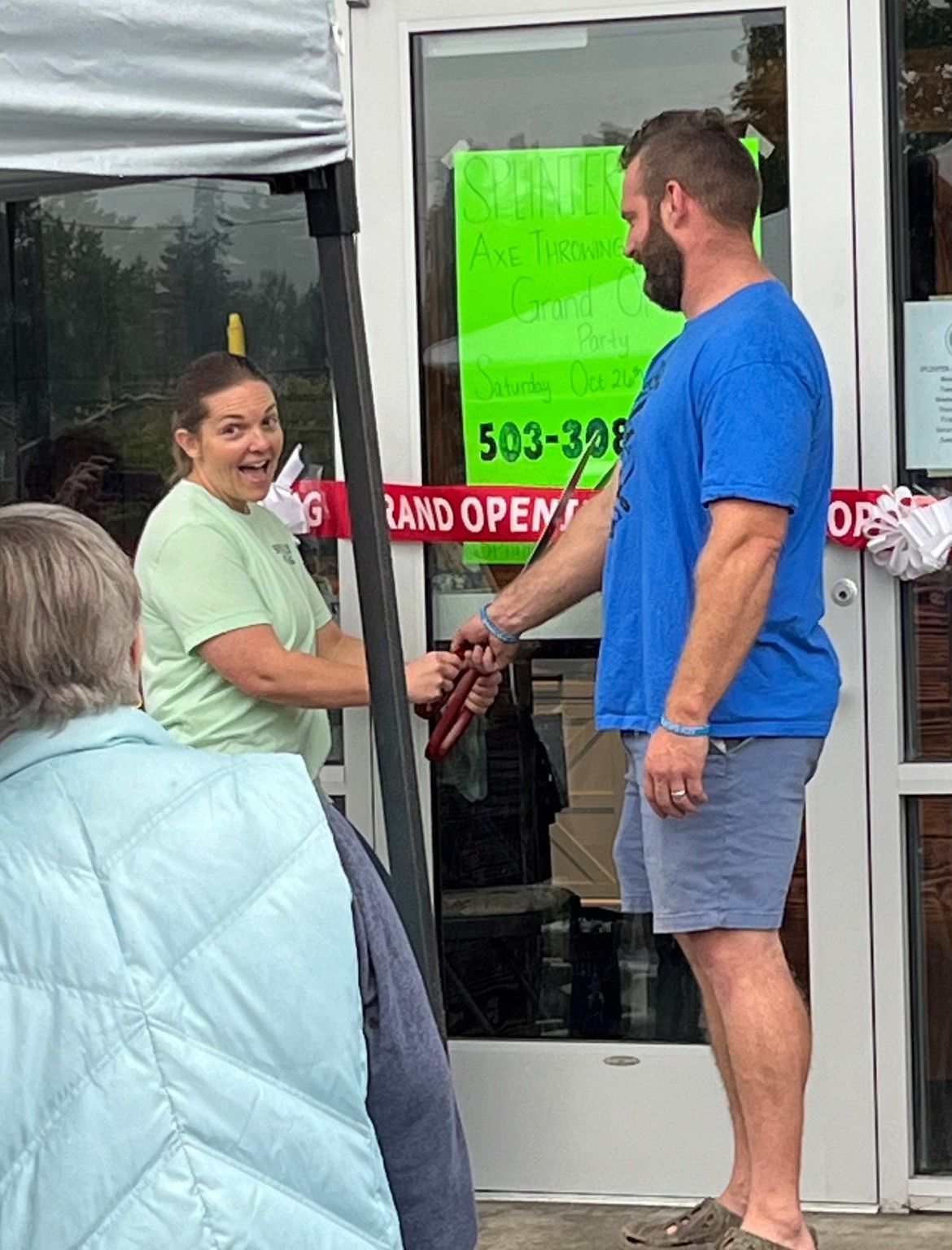 Tammy and Levi Hobson started Splinter Alley with their Axe Throwing Mobile Unit in August, 2023. Since then, they have served surrounding communities with the best family entertainment for birthdays, weddings, holidays, festivals, graduations, corporate events, bachelor(ette) parties and more. They’ve been to Banks, Hillsboro, McMinnville, Vernonia, Astoria. They have been to the Hillsboro Air Show, Oktoberfests, Christmas Parades, Farmer’s Markets, Street Fairs and also debuted the Elephant Garlic Festival.
